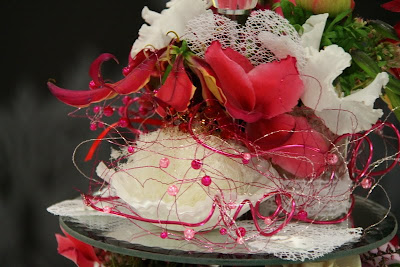 Our Theme for the day was quite wintery, with one or two Christmassy designs taking all the limelight, our "Twinkling Tree" was much admired with glass testubes of fresh cut Cyclamen & Red Nerines dangling from the branches.