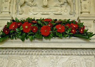 The registrars table design was split across both registrars tables, it's a special Flower Design creation inspired by "The Hanging Gardens of Babylon" the flowers are arranged along the edge of the table cascading over the front in a sort waterfall style