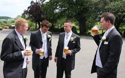 The Groom's men were all wearing a lovely Rose with Syringia Hydrangea florets.